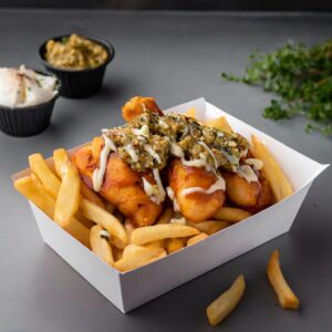 Lightly seasoned tender and juicy bite size piece of Canadian farm raised chicken, place on top of our crispy fries covered in 100% Canadian cheese curds and choice of hot delicious gravy or Creamy mushroom gravy.